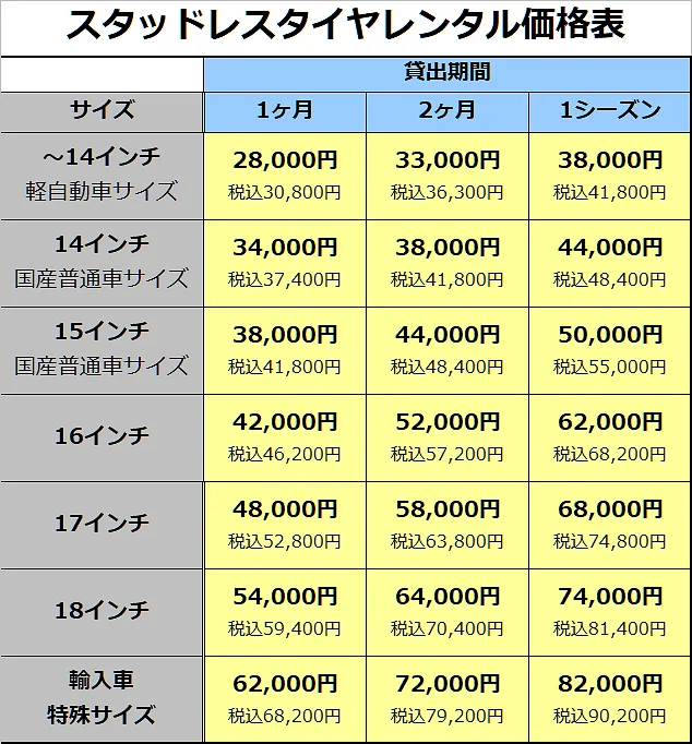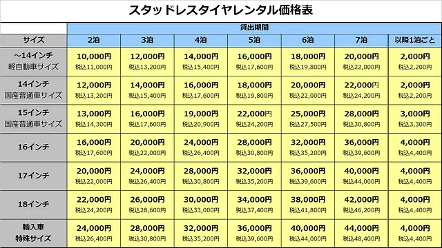 当店では、タイヤ交換以外にも、タイヤ預かりサービス、スタッドレスタイヤレンタルも行っております。