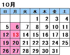 10月 6、12、13、19*、20、26、27
